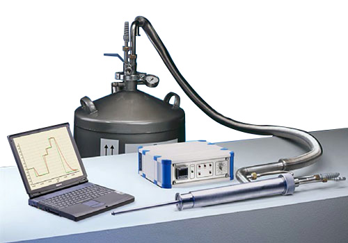 利用控制低溫氮氣的溫度和流量來實現(xiàn)外部系統(tǒng)的冷卻,低溫度能夠穩(wěn)定控制在-180℃。液氮在儲罐中蒸發(fā)形成低溫氮氣,這種氮氣通過蒸發(fā)來作為冷卻介質(zhì),以實現(xiàn)準確的溫度控制。液氮氣體化器能夠進行調(diào)節(jié),大程度地減少液氮的耗用,自動調(diào)節(jié)制冷功率和氣體流量。低溫氮氣通過隔熱的柔性金屬管輸送至待冷卻的樣品上,僅需幾分鐘即可提供-180℃的低溫氮氣流。如有需要準確和穩(wěn)定的氮氣流,還可以安裝后續(xù)的加熱模塊,將低溫氣流加熱至設(shè)定溫度,確保流速平穩(wěn)、溫度準確。